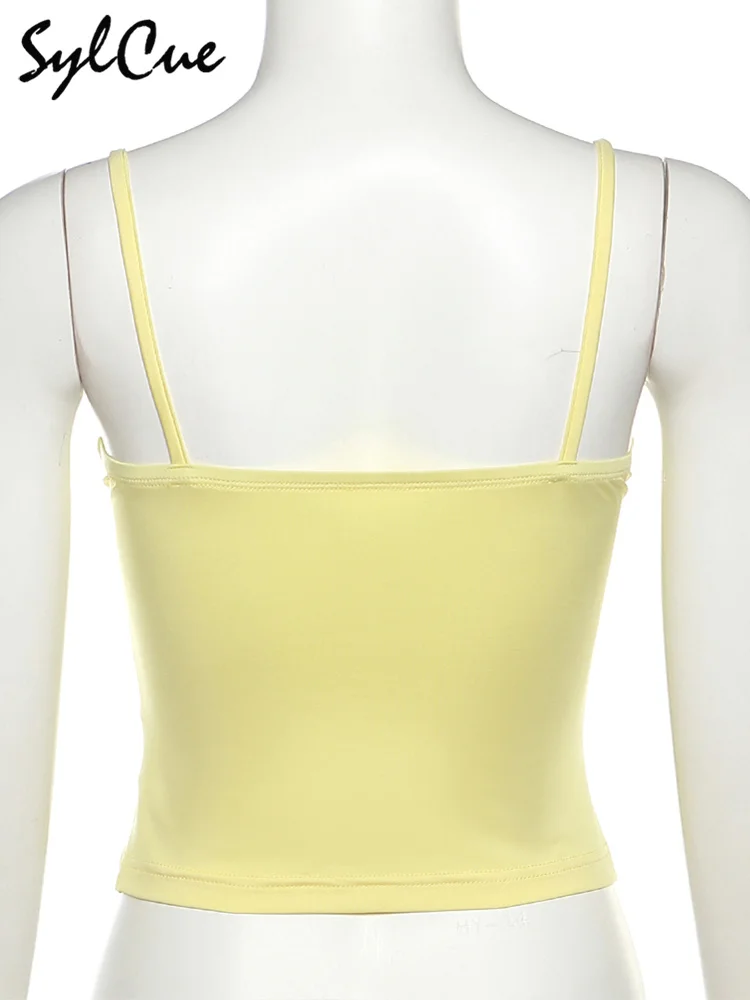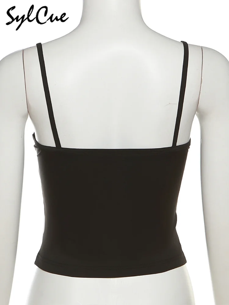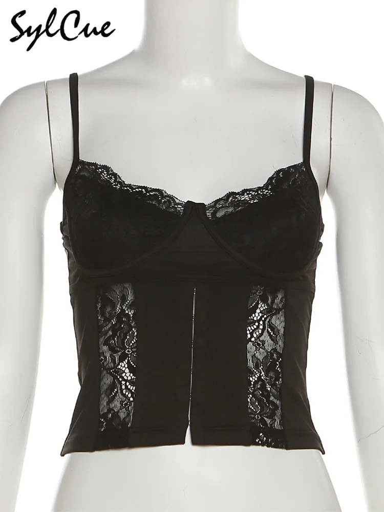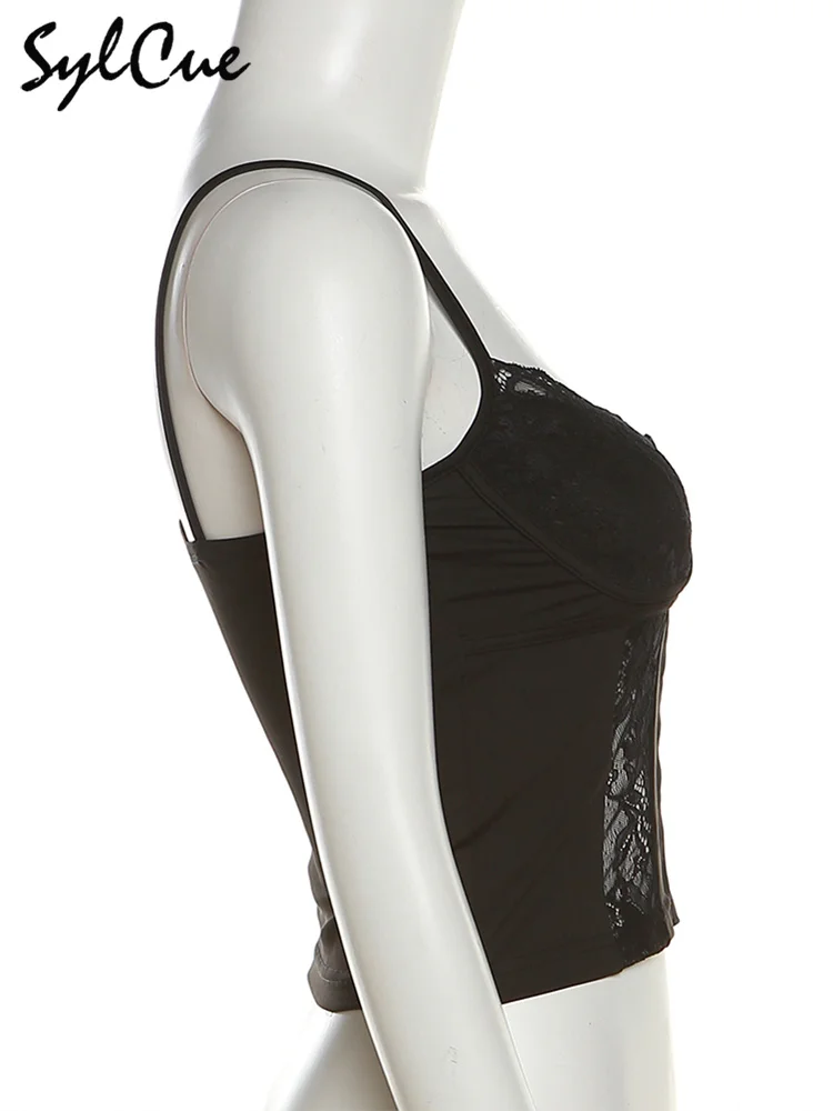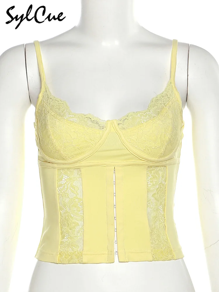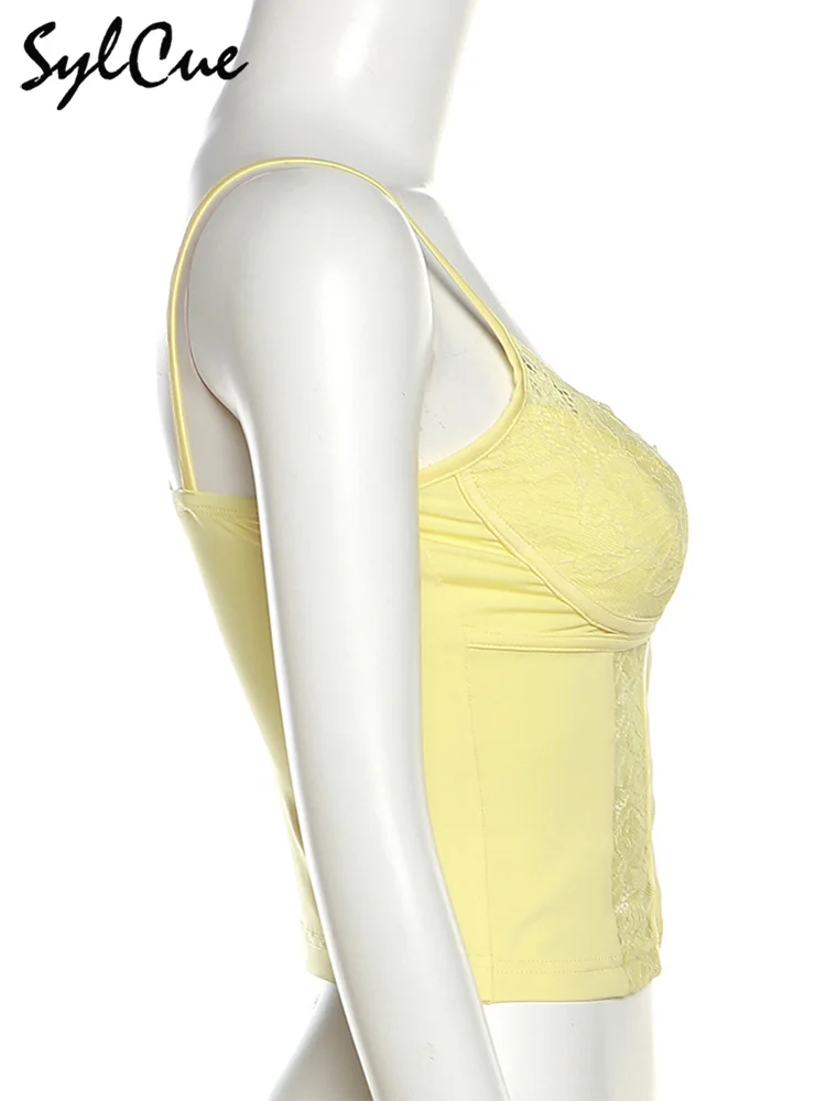 Sylcue 2023 Summer New Solid Color All-match Personalized Trendy Tight Sexy Hot Lace Cool Open Confident Women’s Camisole