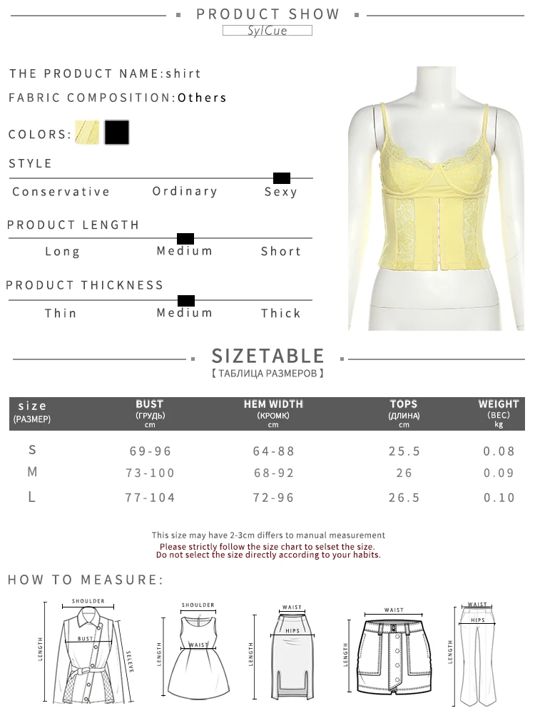 Hign-concerned Chemical: None Craft of Weaving: Tatting Season: Summer Age: Junior Model Number: K23B31473 Style: High Street Pattern Type: Solid Clothing Length: Short (4 – 16 Inch) Decoration: Lace Tops Type: CAMIS Fabric Type: Blended Material: POLYESTER,SPANDEX Gender: Women Origin: Mainland China Item Type: tops Brand Name: SylCue Elasticity: Slight Strech CN: Guangdong