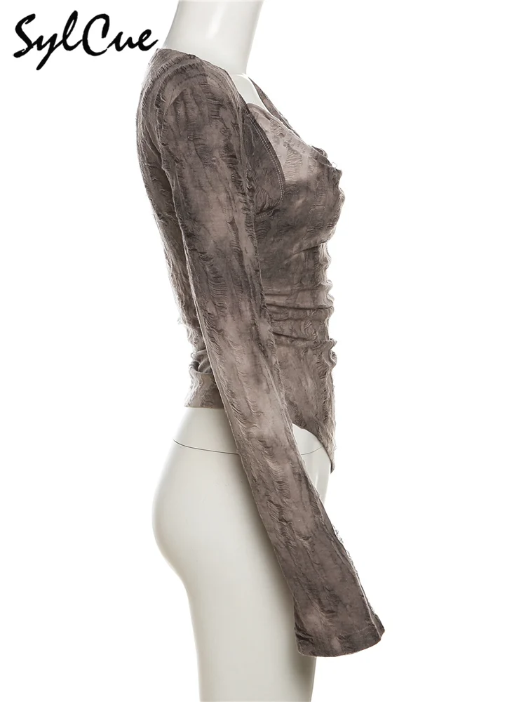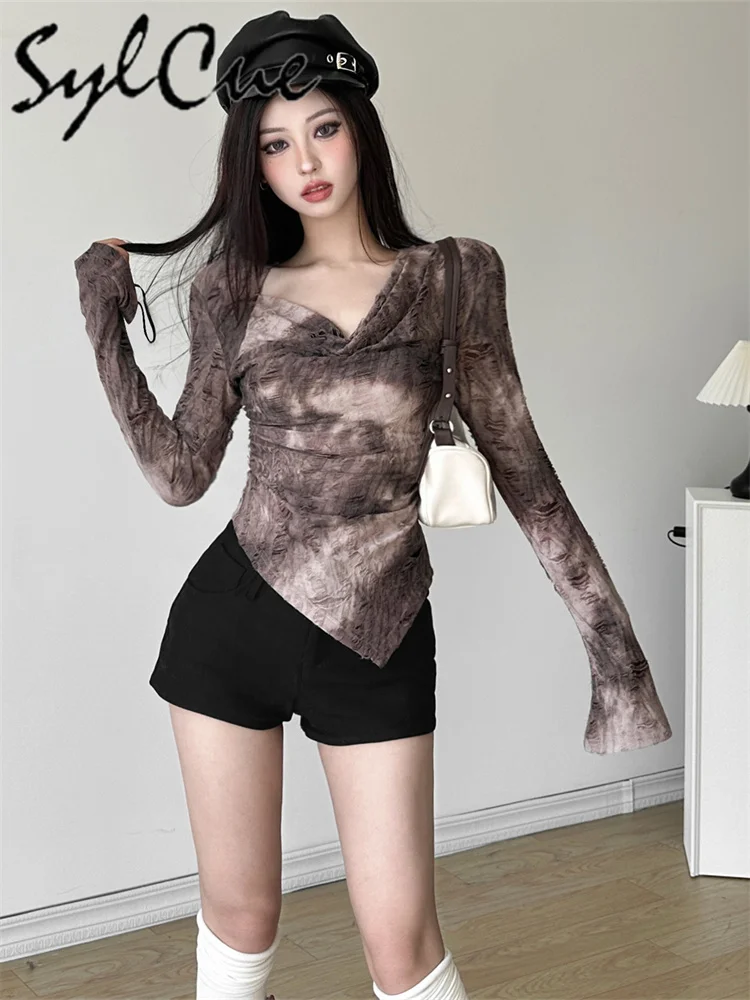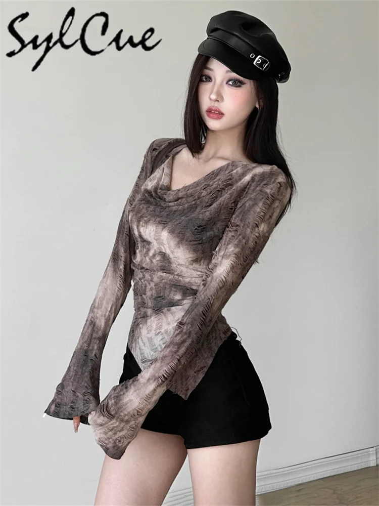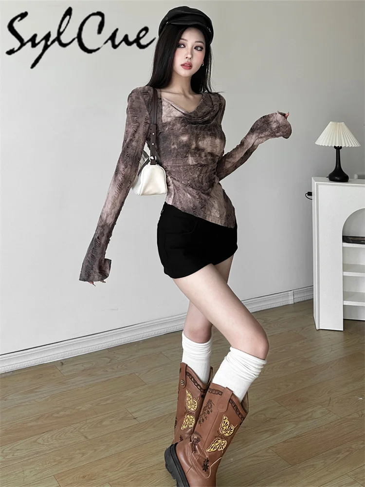 Sylcue Retro Sweet Gentle Cute Youth Girl High Street Travel Cool Confident Personality All-match Casual Women Winter Base Shirt