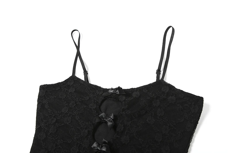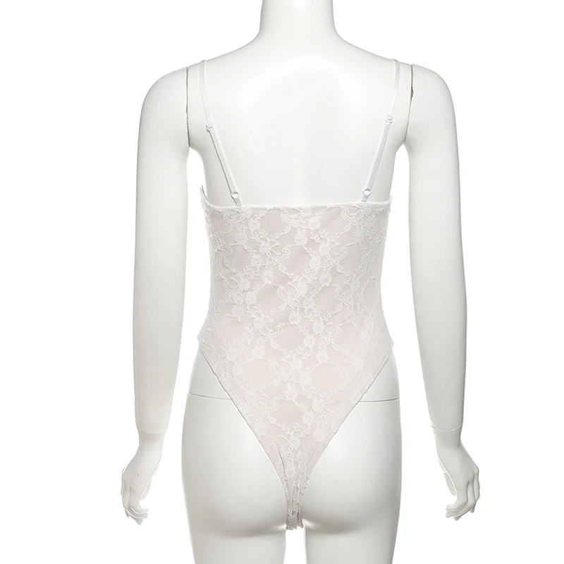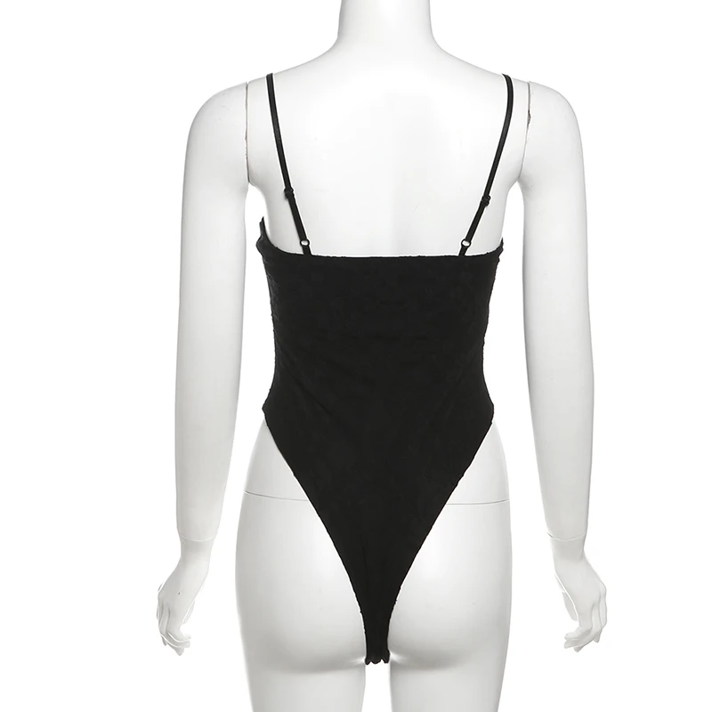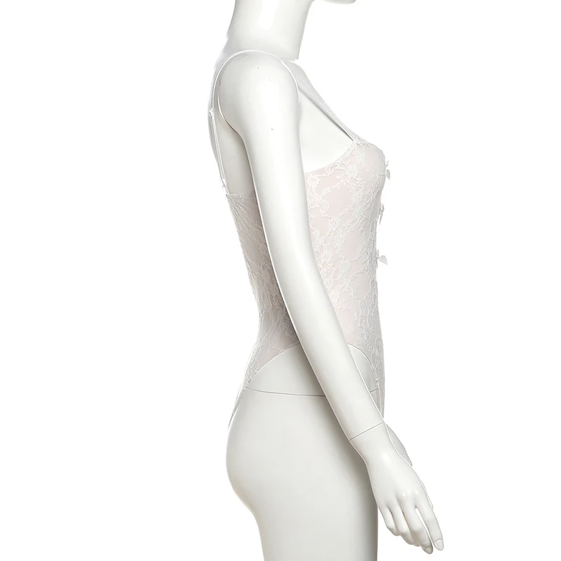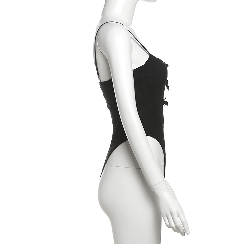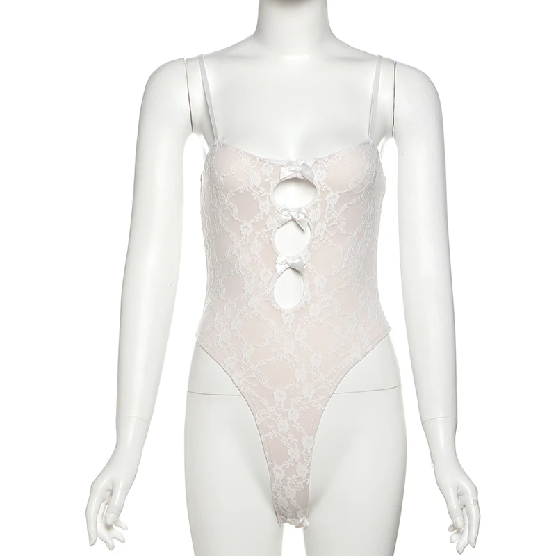 SylCue Sexy Hollow Bodysuits Women Mesh Patchwork Sleeveless Backless Shaped Waist Skinny Bow Decoration Street Wild Style Tops